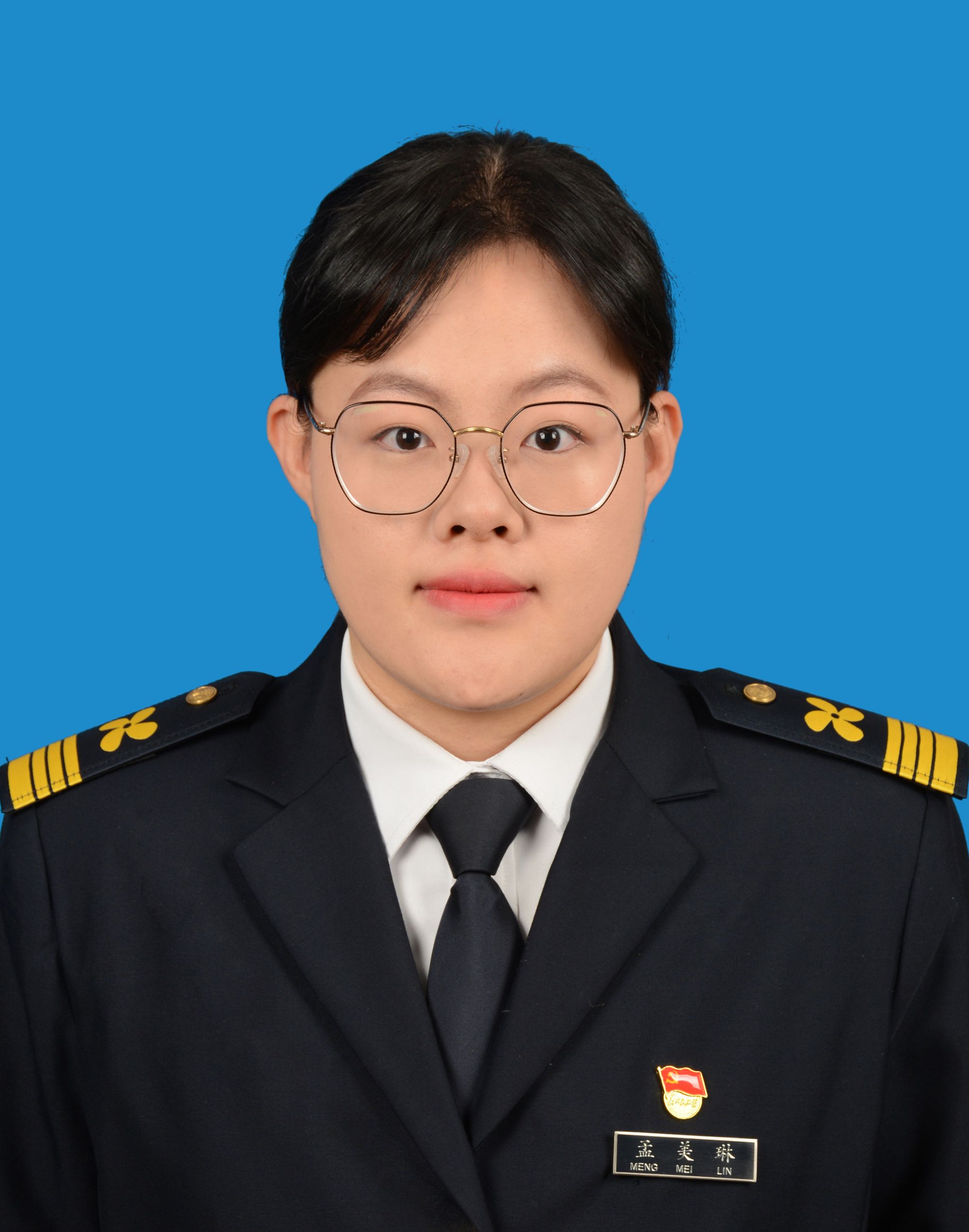 孟美琳,女,汉族,中共党员。担任轮机工程学院2020-1中队学习委员、学院学风引领骨干、中队女生内务负责人、轮机工程2023级代职干部。曾获国家奖学金(连续两年)、 单项竞赛活动奖学金、大连海事大学青春人物“砥砺奋进”奖章、大连海事大学优秀学生干部、三好学生、优秀实践个人等荣誉,在中国国际“互联网+”大学生创新创业大赛获国家级金奖,在全国三维数字化创新设计大赛获国家级一等奖等。
